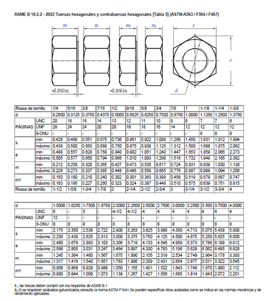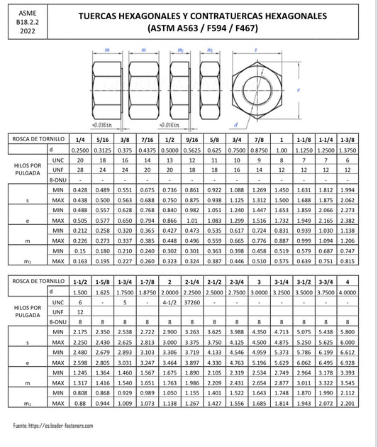 Tuerca Hexagonal Numeración Americana Acero Inoxidable